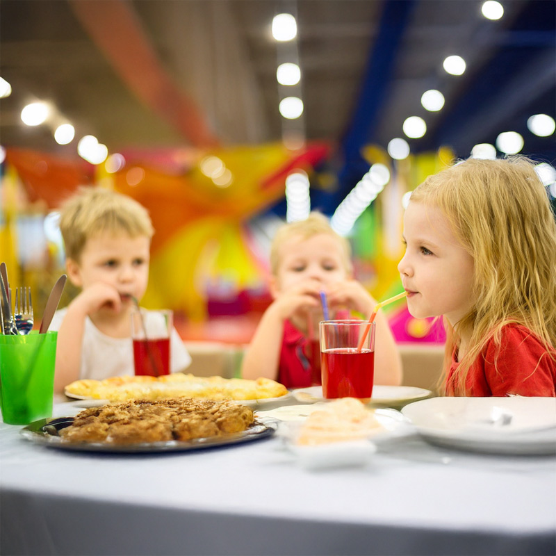 Sind die Geburtstagstische dekoriert?Ja, wir dekorieren die Tische mit Servietten, Gummibärchen, Trinkbecher, Geburtstagskrone und einem Geburtstagsgeschenk.